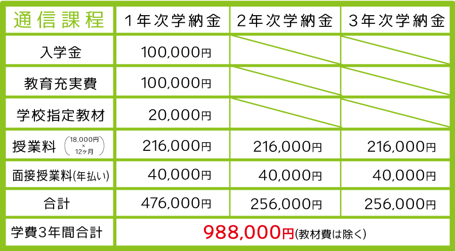 ■学費・・・年次3月までの一括払いとなります